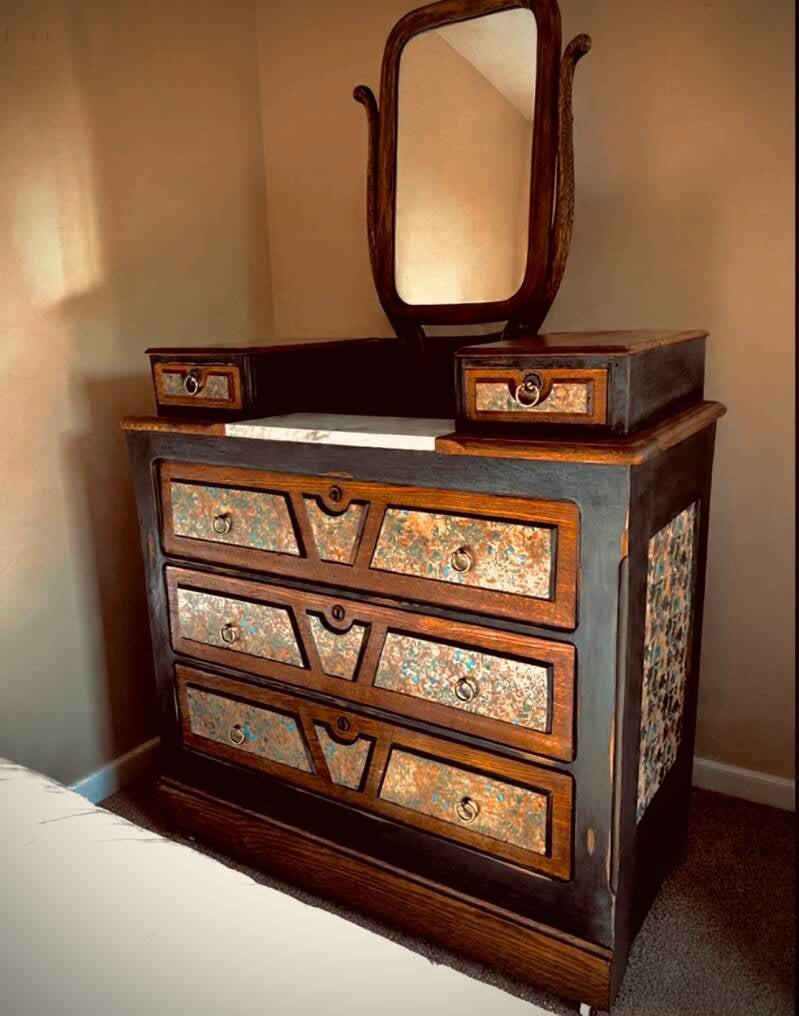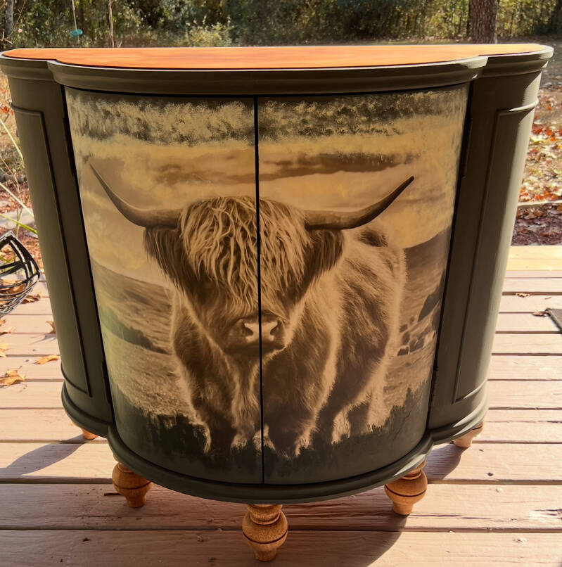 "I couldn't believe my eyes! "Wood" you look at that! transformed my an old cabinet into a breathtaking focal point. The decoupage work is exquisite, and her attention to detail is unmatched."